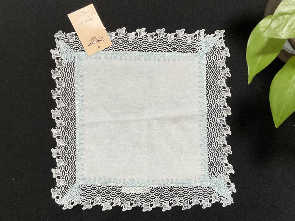 - 未使用 近沢レース タオルハンカチ 1枚 美しいレース装飾 タグ付き新品(淡い水色系お色)匿名配達 ②