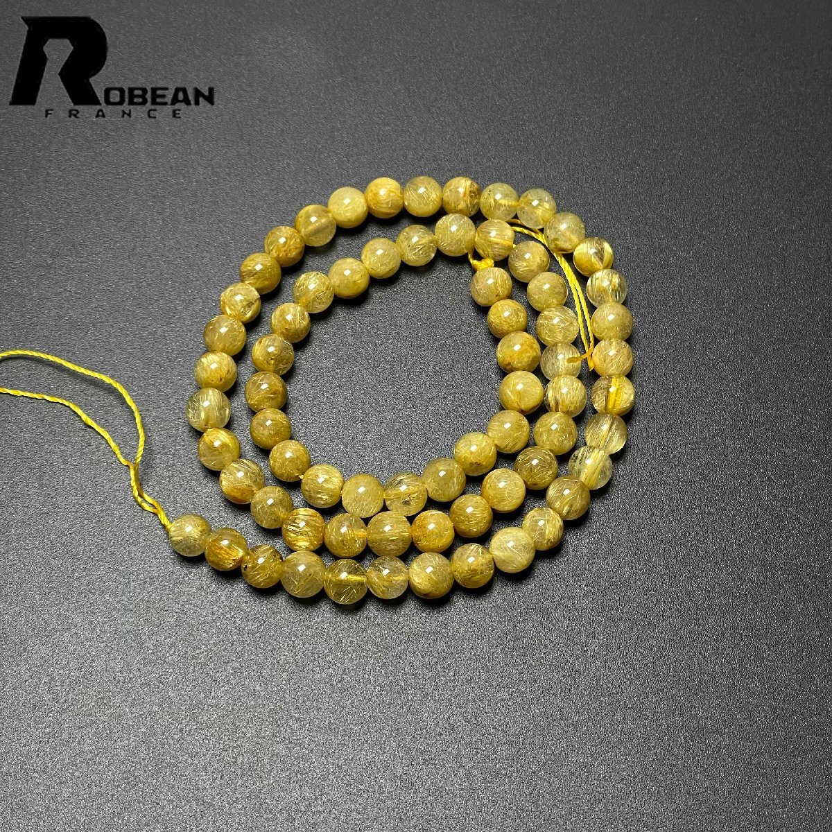 > 絶賛 EU製 定価7万円★ROBEAN・黄金タイチンルチル★黄金針水晶 ゴールド 金運 開運 パワーストーン 1連 約5.8-6.3mm M0428080