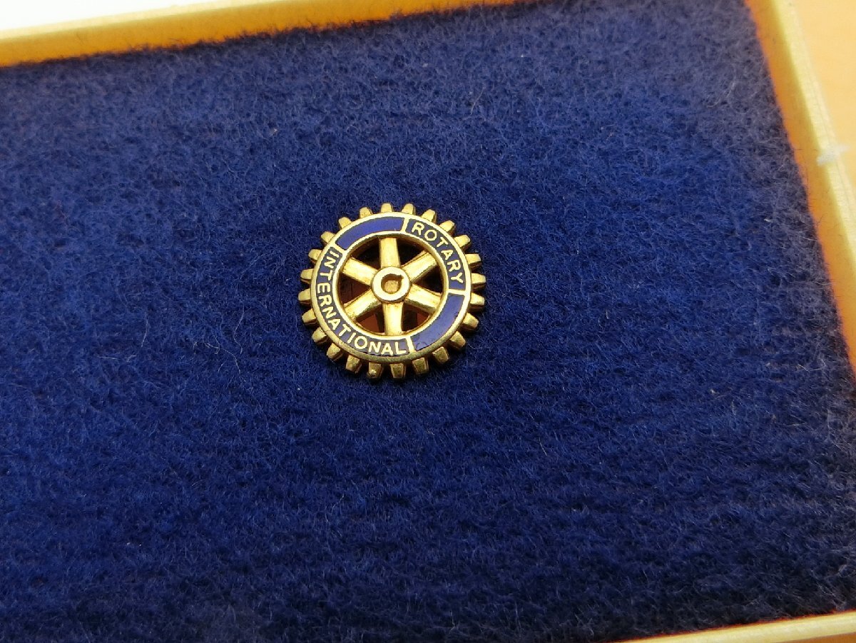 > WAKO 18K ロータリー インターナショナル ゴールド×ネイビー 総重量約1.3g バッジ 和光 留め具欠損有 1円~ N0563