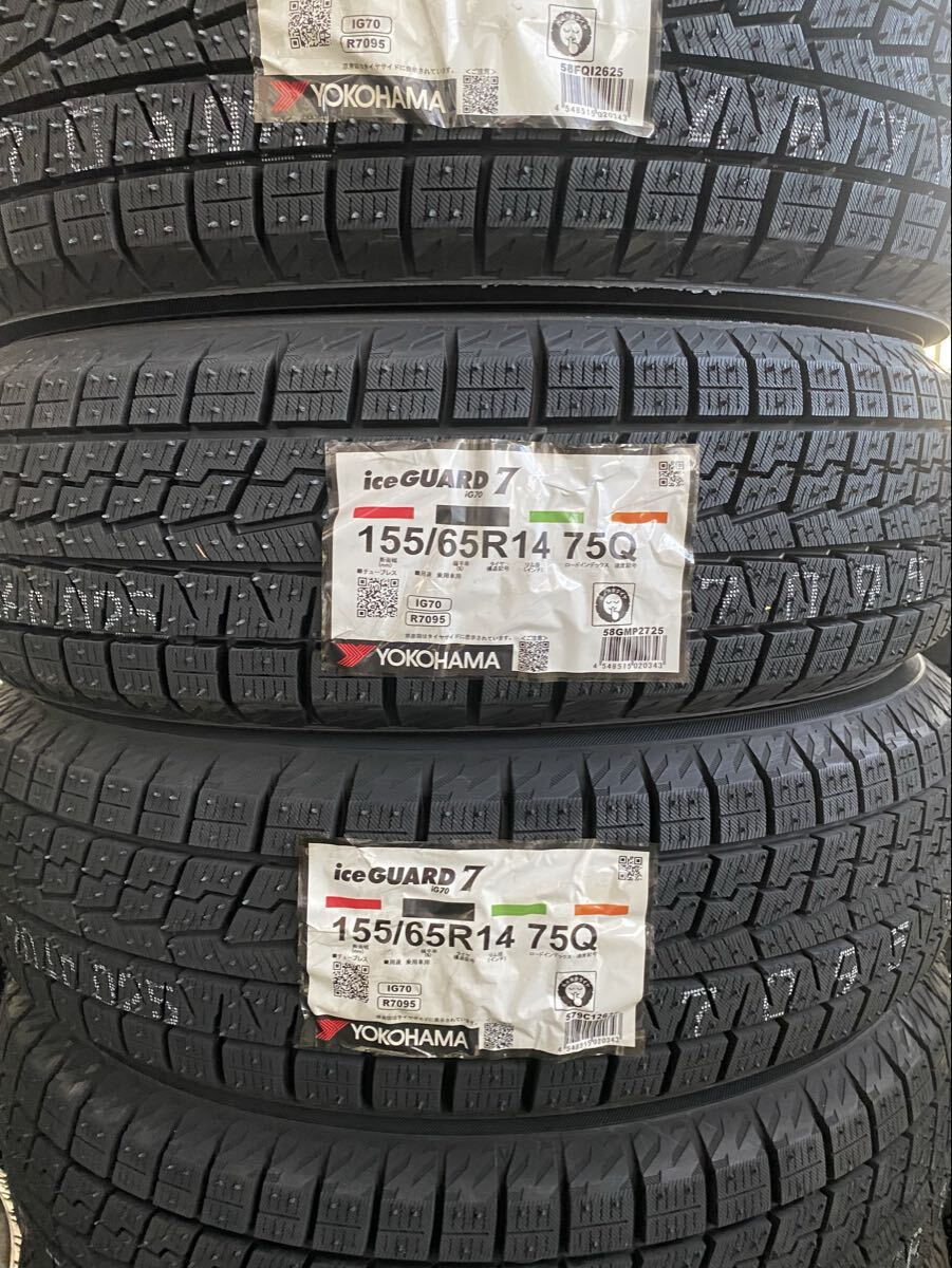 - 25年製新品ヨコハマタイヤIG70155/65R14 スタッドレス4本セット