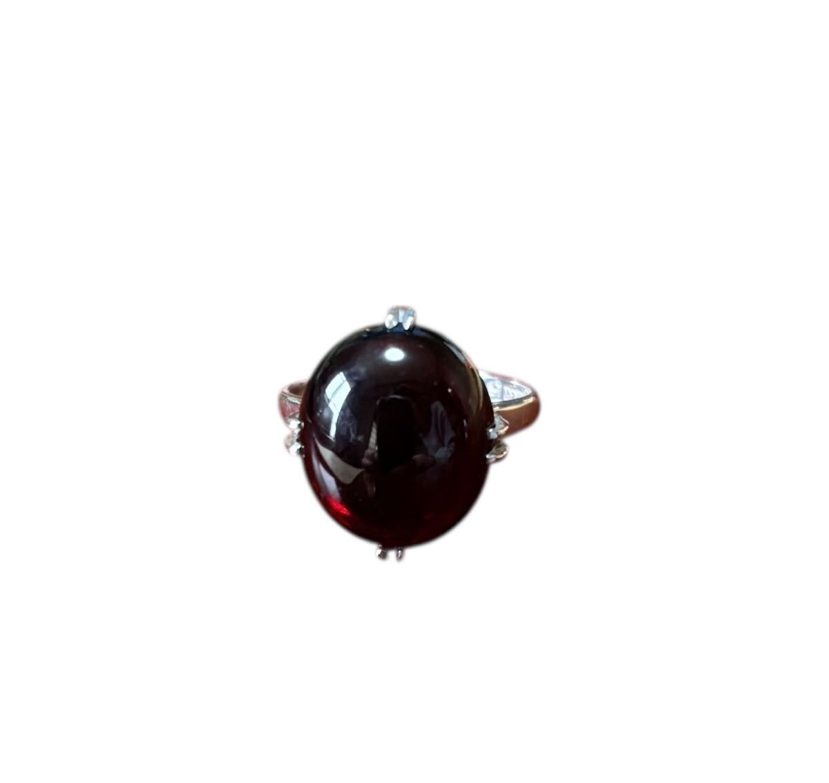 - 1円スタート: ブラックオニキス 14K WG 指輪 リング ホワイトゴールド 天然石 刻印あり 号数不明 (L1025)