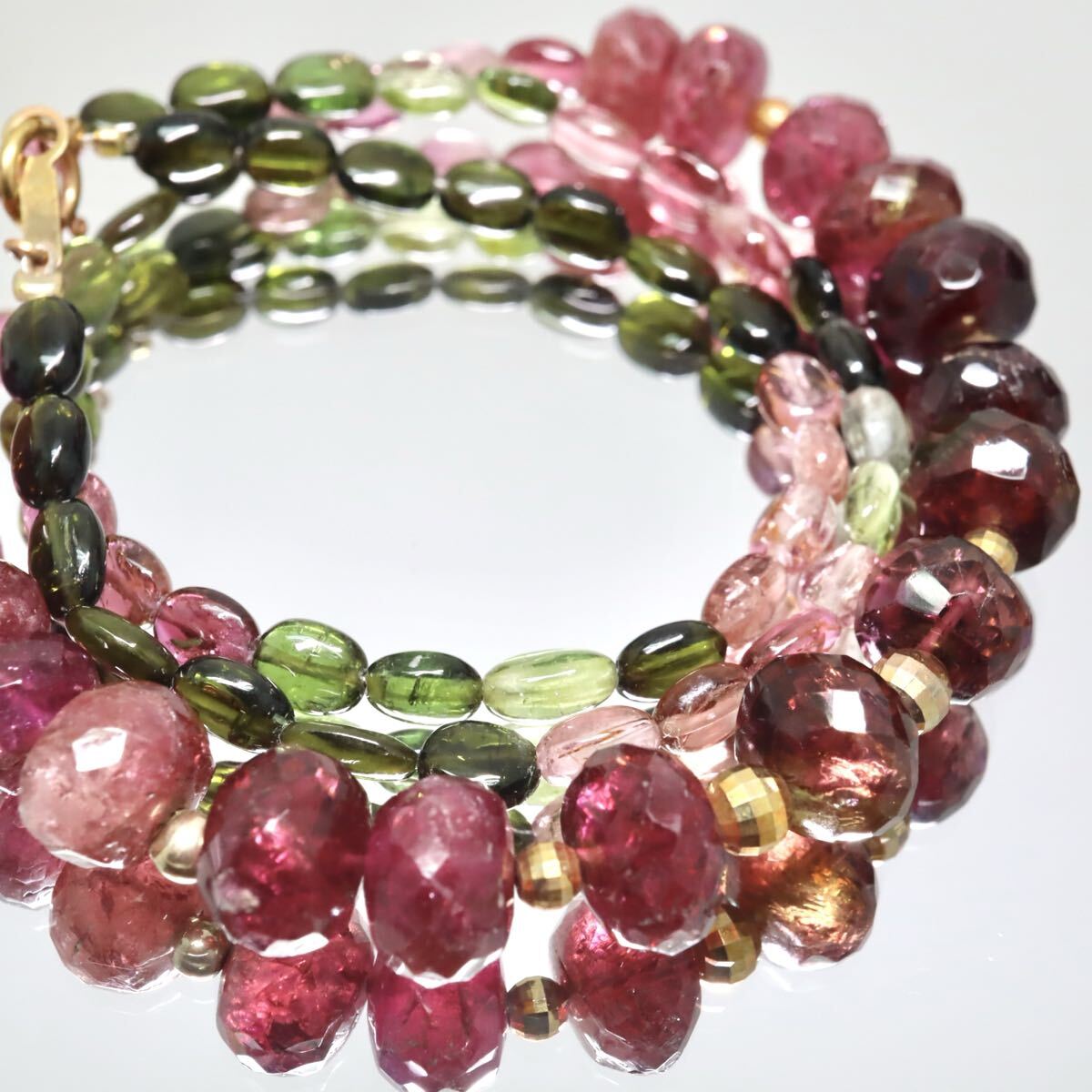 > K18!!大粒付き!!人気商品!!■天然トルマリンネックレス■D 約18.6g 約42.5cm tourmaline necklace jewelry ジュエリー ピンク EA4/EA0 U921