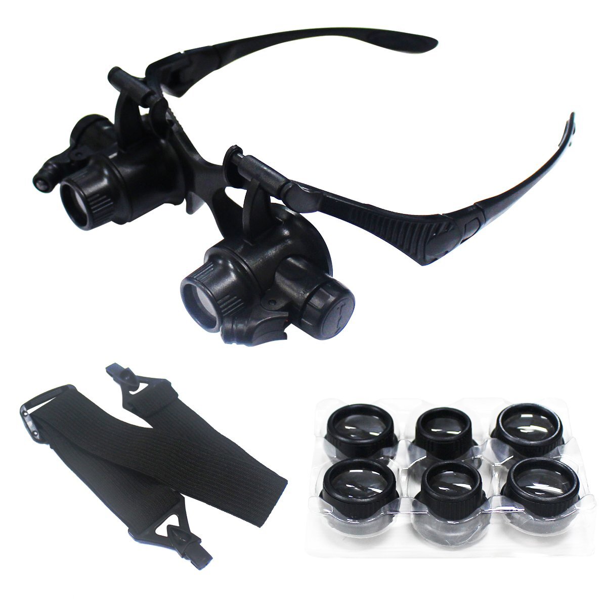 - メガネ ルーペ LED ライト付 拡大鏡 10倍 15倍 20倍 25倍 眼鏡式 めがね ヘッドルーペ プラモデル 鑑定 精密 製作 工具