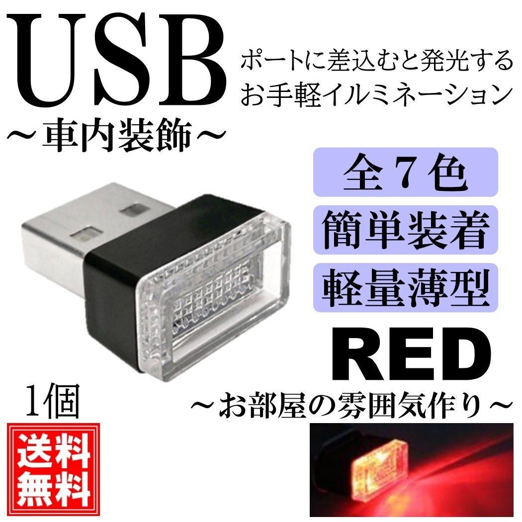 - レッド 軽量小型 綺麗 USB イルミライト LED イルミネーション イルミカバー 車内照明 ライト ポート 車用 車内