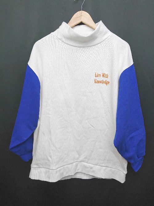 - ◇ RodeoCrowns ロデオ クラウンズ 裏起毛 ハイネック 長袖 トレーナー サイズF ホワイト ブルー メンズ レディース P
