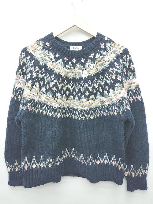 > ◇ ⊇ earth music&ecology アース ミュージック&エコロジー 長袖 ニット セーター サイズF ネイビー マルチ レディース P