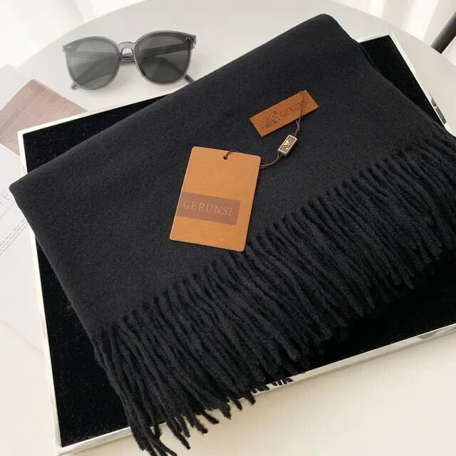 - ☆新品 カシミヤ マフラー ストール 最高の肌ざわり ふんわり なめらか 上質大判シンプル無地 ブランドタグ付き ブラック