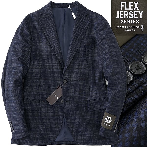 > 新品 7.4万 マッキントッシュロンドン FLEX JERSEY 千鳥柄 ミルド ジャケット 40(L) 紺 【J47807】 秋冬 ウール 起毛 ジャージー メンズ