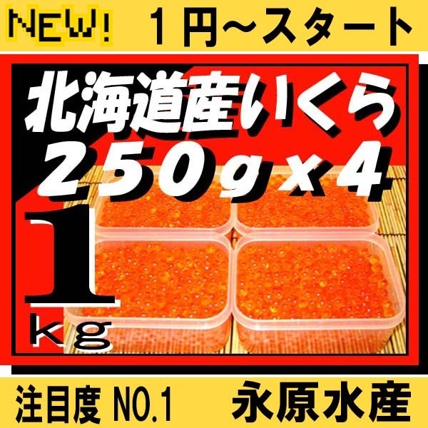 1円~新物!(2025年秋鮭)天然秋鮭大粒イクラ 北海道十勝産秋鮭いくら醤油漬け1kg(250gx4) 『手作りで加工』永原青果 永原水産 (数量1)拍卖