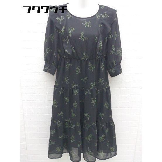 - ◇ ◎ Heather ヘザー 五分袖 ロング ワンピース サイズF ブラック レディース