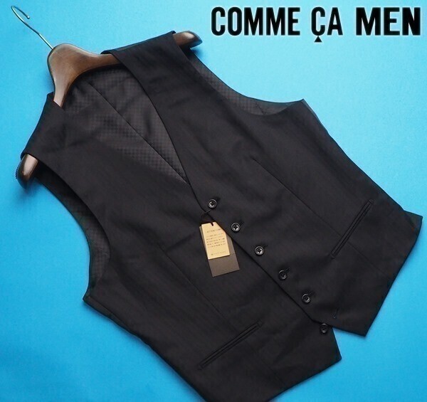 - 新品定価2.2万円 コムサメン 秋冬 Super100Sメリノウール ギャバジン シャドーストライプ ジレ/ベストS黒(05) 02VN09
