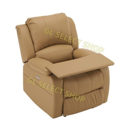 - リクライニングチェア テーブル付き 1人掛け 電動 ファブリック オットマン一体型 耐圧分散 一人暮らし 【ライトコーヒー】