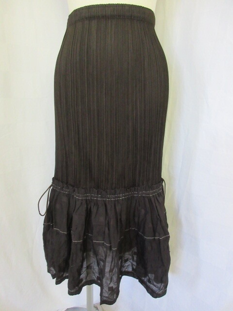 > 915 新品タグ付き プリーツプリーズ こげ茶色 素材切り替え スカート PP43-J6505 4サイズ