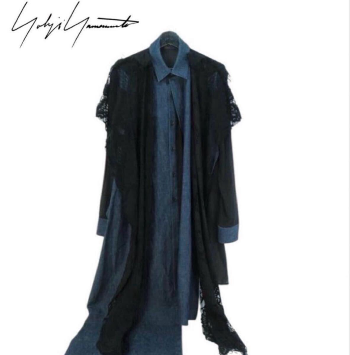 > 希少 YOHJI YAMAMOTO ヨウジヤマモト ファム 22AW デニム/レース ロングアシンメトリーシャツ ジャケット アウター