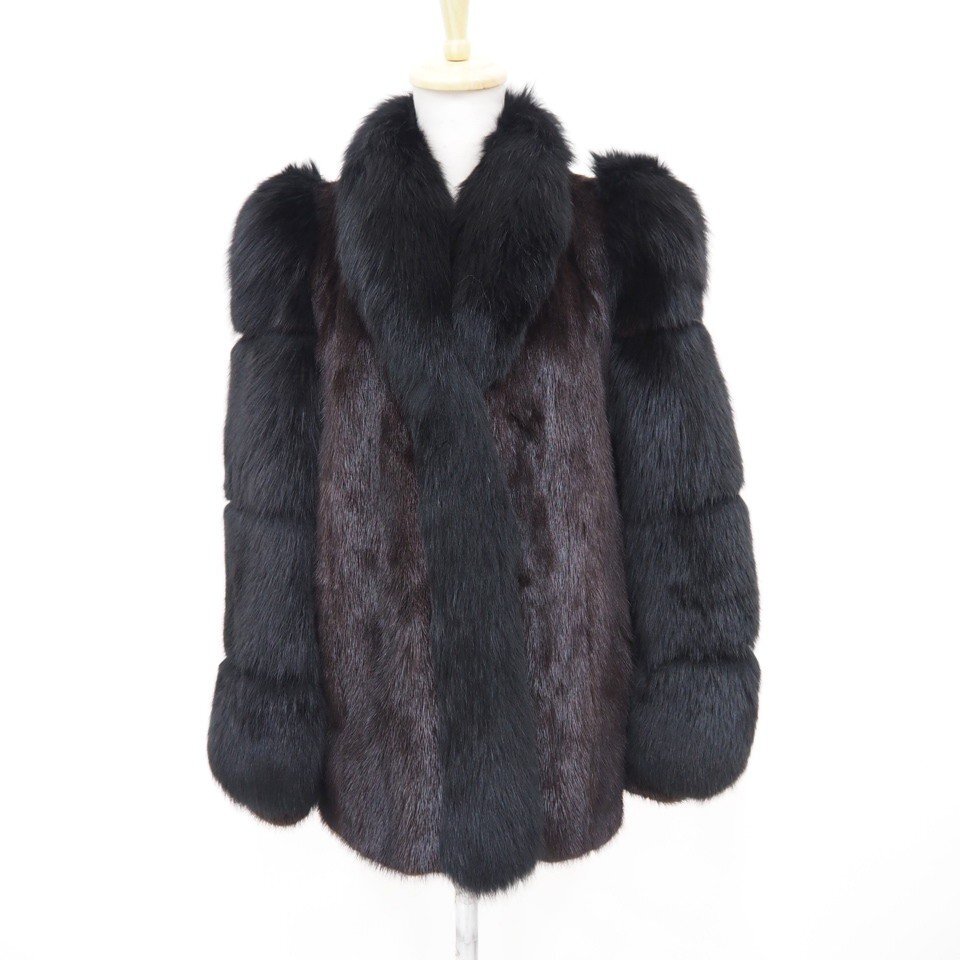 > 高級毛皮【 ¥1000~ / ボリューミー / ノーブランド 】美品 ◆ミンク×フォックス◆ハーフ丈 69cm◆ダークブラウン×ブラック◆11号◆D530
