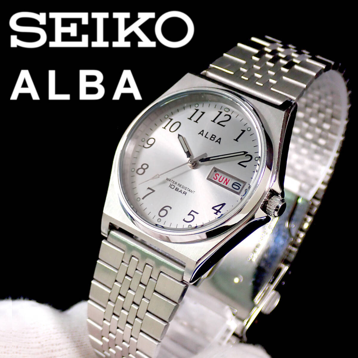 - セイコー アルバ デイデイト シルバー文字盤 点検動作品 SEIKO ALBA WATER RESISTANT 10BAR 7N43