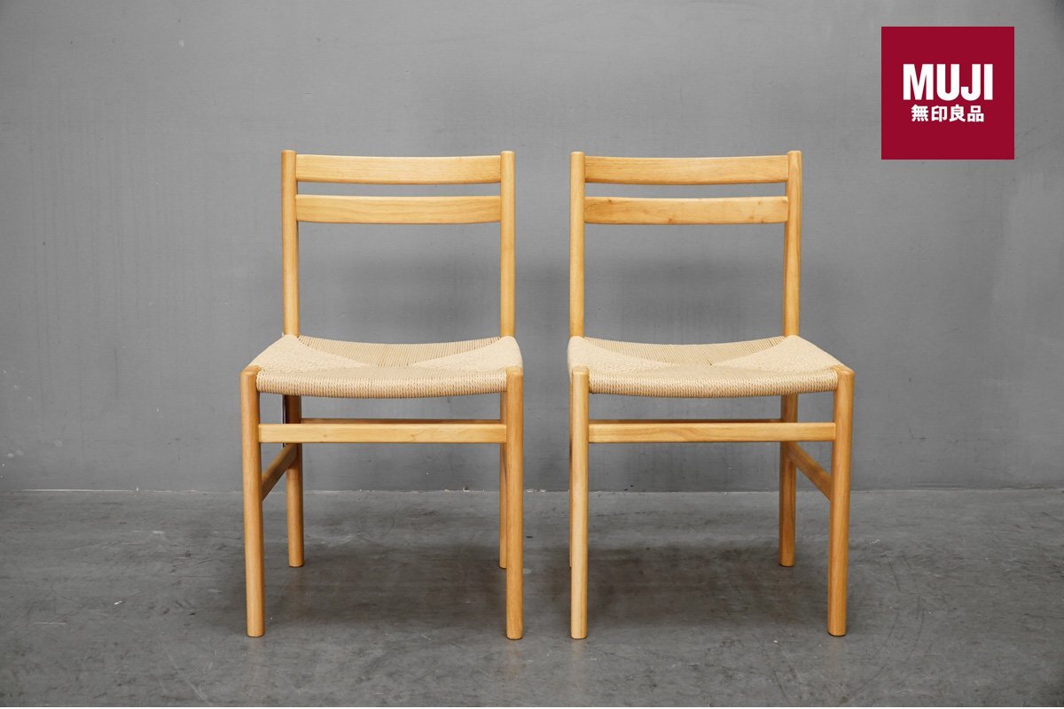 > 極美品 無印良品 木製ペーパーコードチェア2脚セット ラバーウッド材 ダイニング3.6万031201
