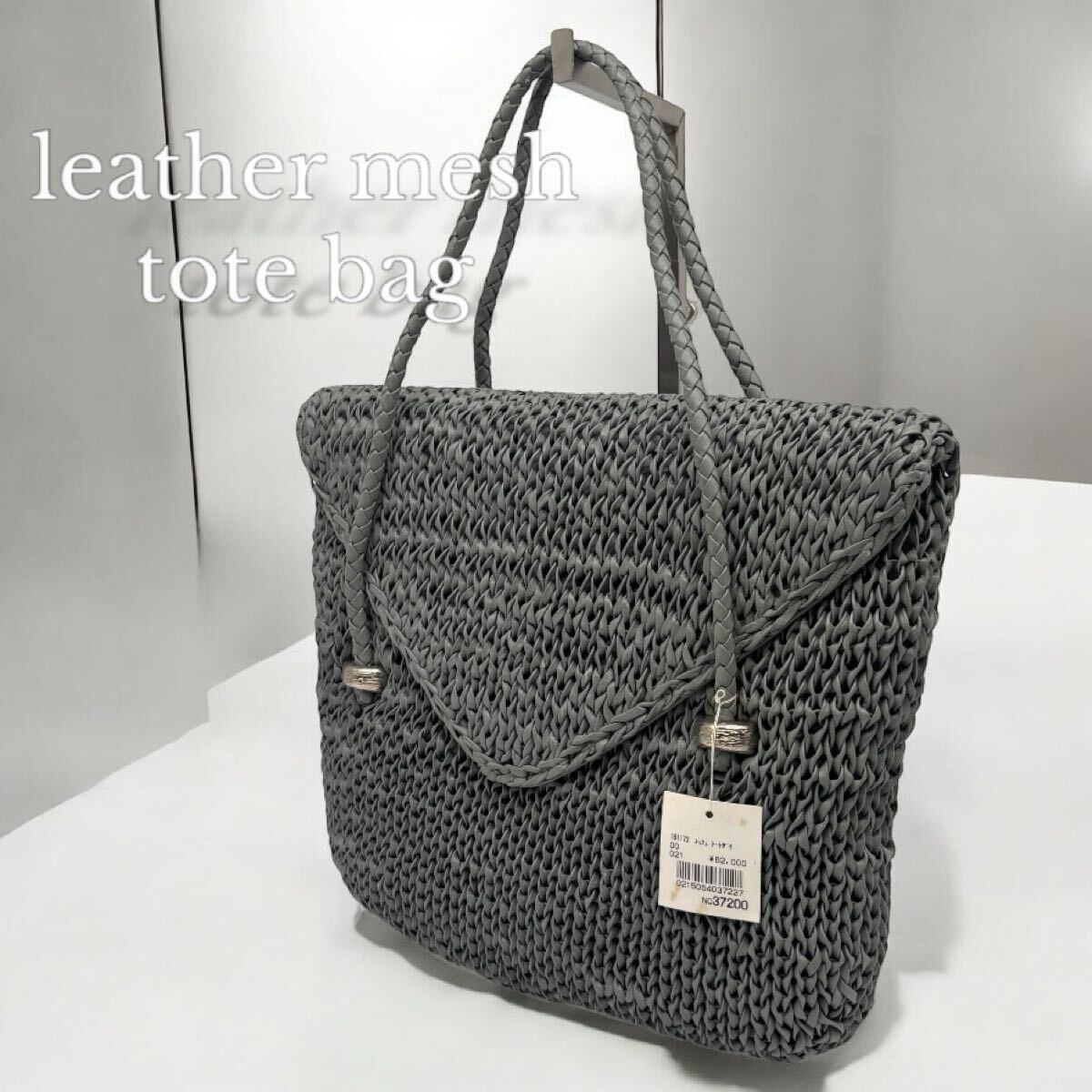- 同梱可 日本袋物協会 トートバッグ ハンドバッグ 鞄 牛革 レザー 本革 グレー 肩掛け メッシュ 編み込み タグ付き