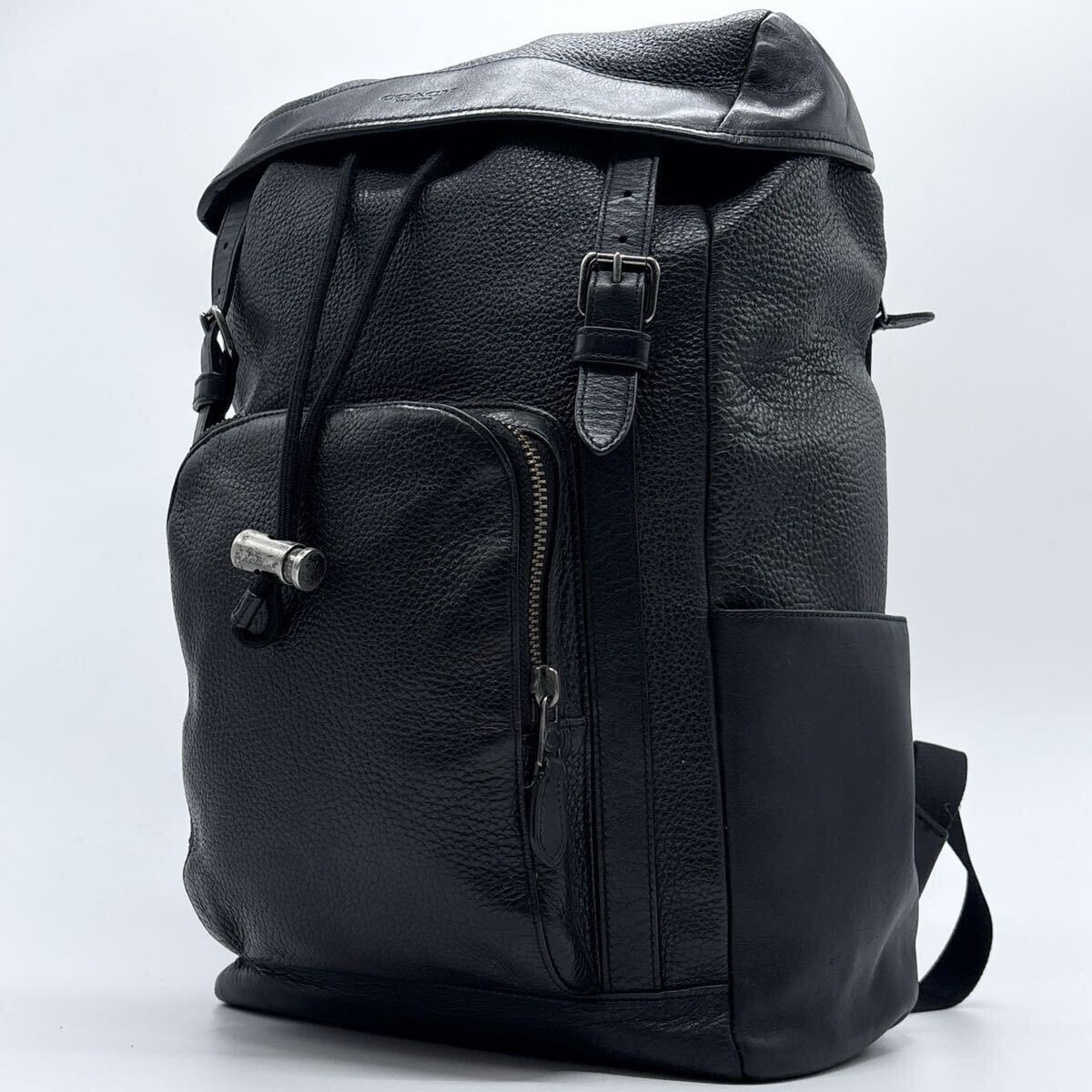 - 美品/A4収納/大容量 COACH コーチ リュック バックパック ビジネス ヘンリー レザー 本革 多収納 巾着 PC可 メンズ 型押し ブラック 黒