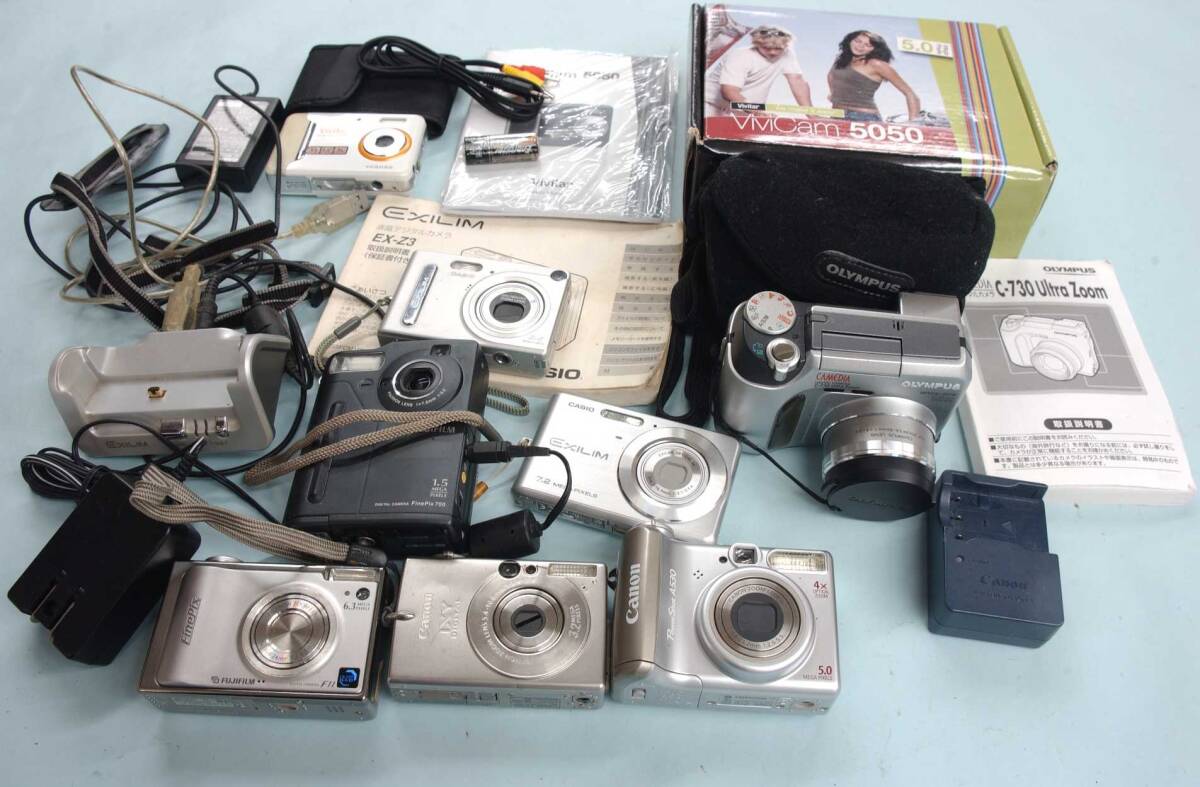 - ジャンク コンパクトデジタルカメラ 8台まとめて OLYMPUS/FUJIFILM/CANON/CASIO