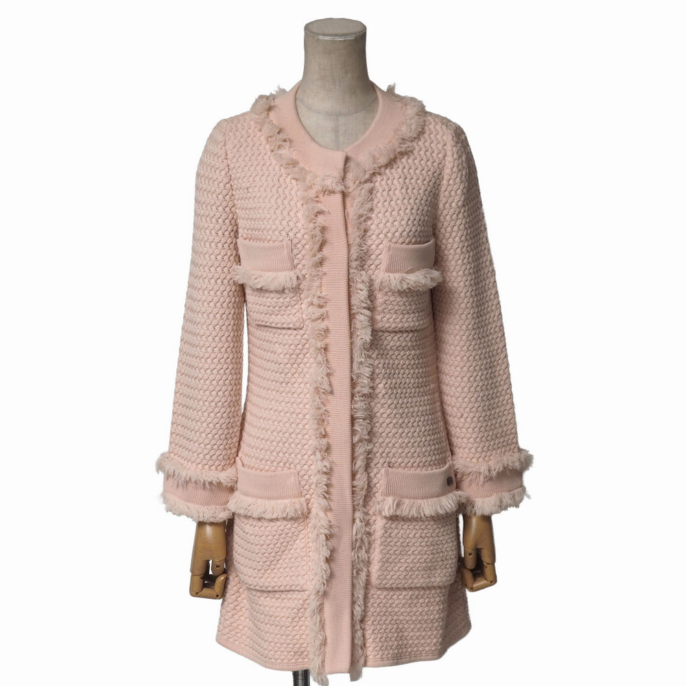 - MI8981》FOXEY BOUTIQUE フォクシー ブティック ノーカラージャケット ロング丈 フリンジ サイズ38 ピンク系