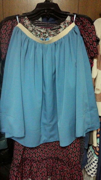 - 水色ブルースカートフレアウエストゴムベージュラメ入りM9号