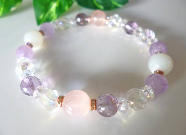 > ★愛の守護★月のパワー★真実の愛★ローズクォーツ★ムーンストーン★ライトカラーアメジスト★ラベンダーアメジスト★レインボーオーラ♪
