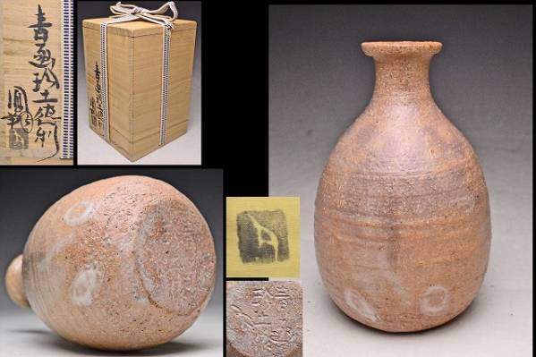 - 那波鳳翔 ★ 青函珍土徳利 ★ 共箱共布 ★ 検 那波翔英 李朝写 播州 相生焼