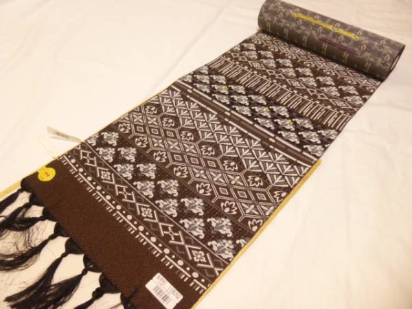 - 新品・未仕立て★西陣・廣部商事・全通八寸なごや帯★こげ茶地