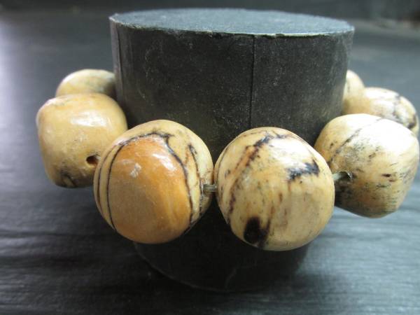 - 栃ちぢみ杢スポルテッド蝋仕上げ10粒大珠ブレスレット:a