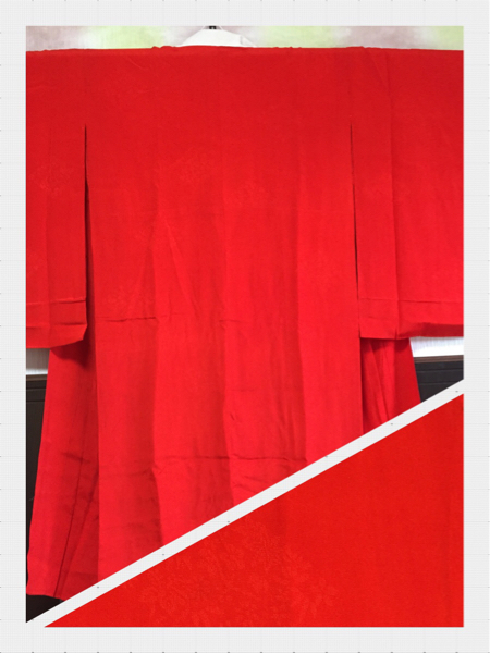 - 【女児の長襦袢】正絹? 袷 着丈124cm 深紅色 菱形地紋 ひろ衿