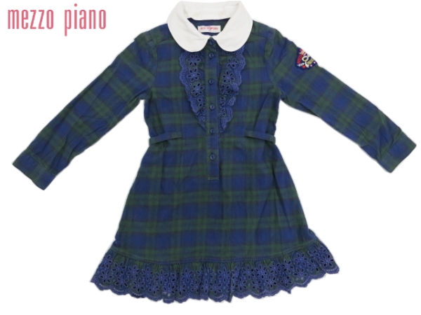 - KO151★mezzo piano★春秋冬 チェック長袖ワンピース 120