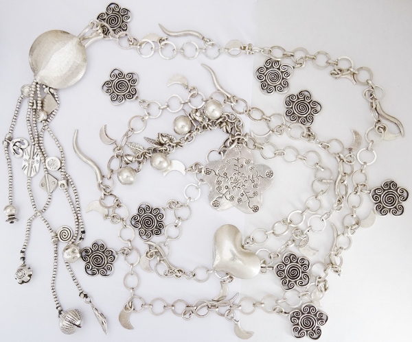 - ◆カレン族シルバー チェーンベルト ハート花鈴◆【09ns02】