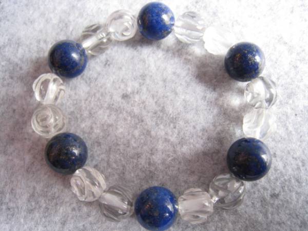 - [SAMU]大珠!!天然ラピスラズリ12mm 彫刻入りクリスタル ブレスレット★新品!
