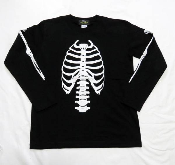 - ボーン骨スカル骸骨TシャツTCM(鎖骨無し前後)ロンTno3.黒M