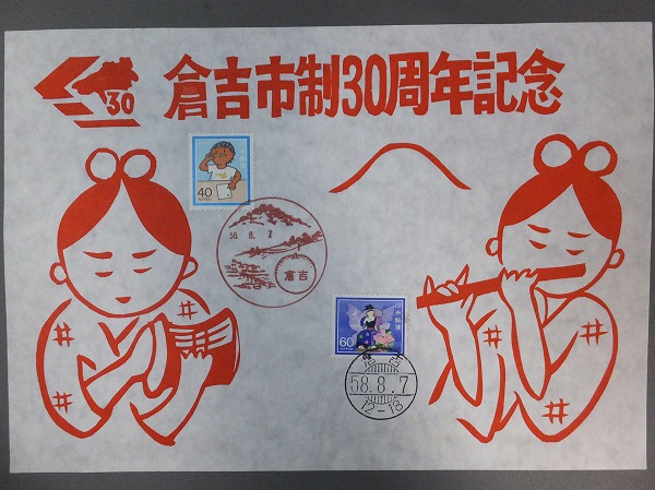 - ♪倉吉市制30周年記念 風景入り日付印 58.8.7 in0601-62