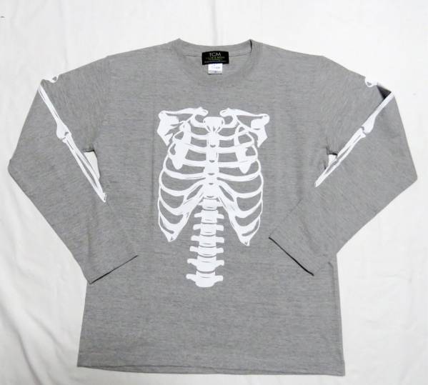 - ボーン骨スカル骸骨TシャツTCM(鎖骨有り)前後no3ロンTグレイM
