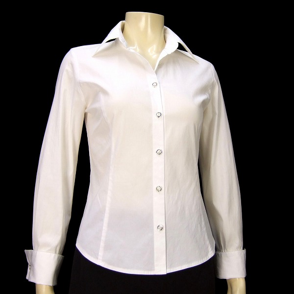 - H 美品★SENSOUNICO センソユニコ★白*ロゴ釦*優秀ストレッチ素材*綺麗シャツブラウス*40/L*11号