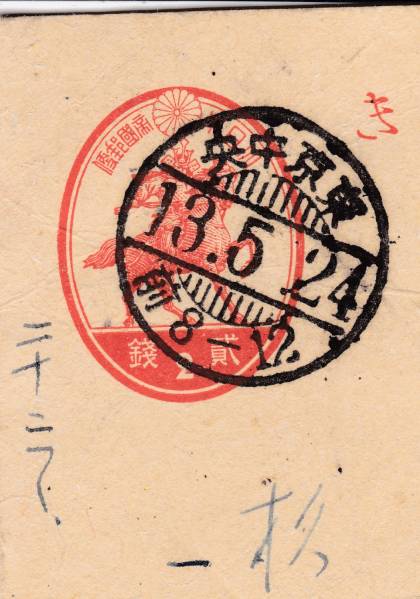 - t2576★櫛型印/東京中央13.5.24/楠公葉書