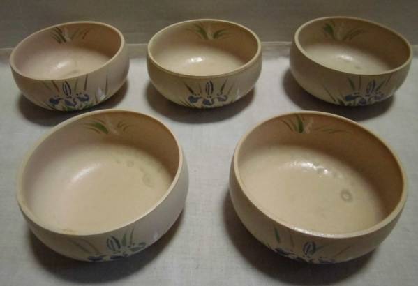 - ★レトロ 幸泉 幸泉作 手がき 花柄 小鉢 5客 未使用 径約11cm 内側にも柄有り 陶器 工芸品 レトロ★