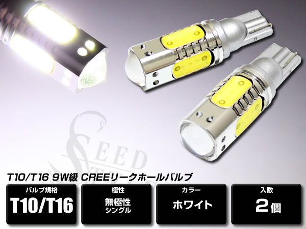 - T10/T16 ウェッジ ホワイト 9W級 CREE リークホール搭載 2個SET