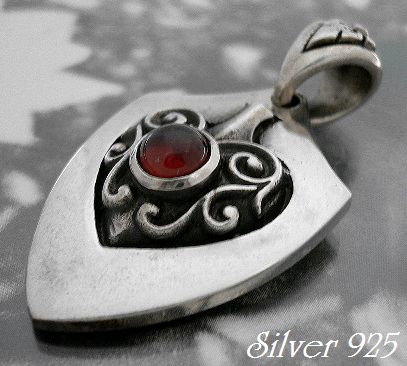 - シルバー925銀の盾シールド アラベスク ハート ペンダント ガーネット付/α silver