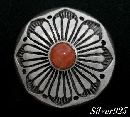 - シルバー925銀の家紋風コーラル付コンチョ/革財布のカスタムパーツに