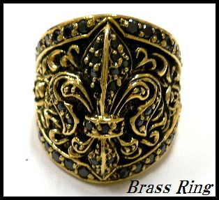 - 真鍮製Brassフレア百合紋ジュエル[ブラックジルコニア]ブラス リング/15号.22号.23号より