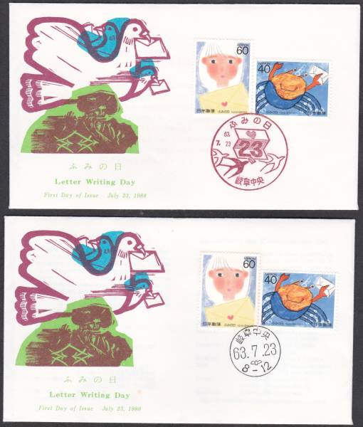 - FDC 1988年 ふみの日 2消し2通 JPS