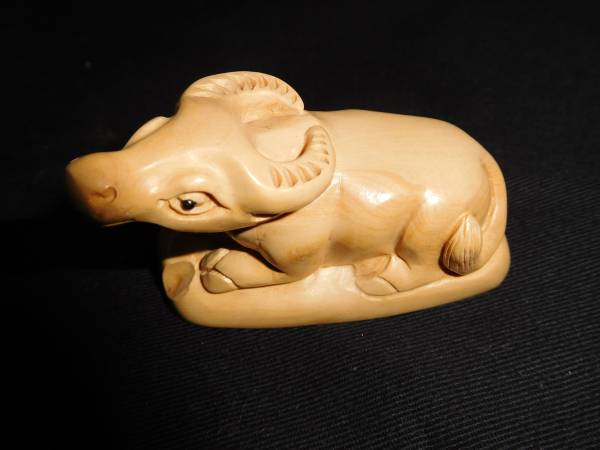 - 工芸品 根付 くつろぐ牛 送料無料 [pza]33-4