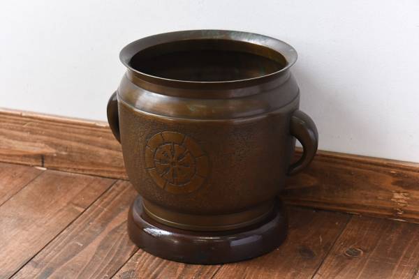 - R-028637 骨董・古民具 明治大正期 上手物 源氏車紋様の耳付銅火鉢(鉢カバー)(2)