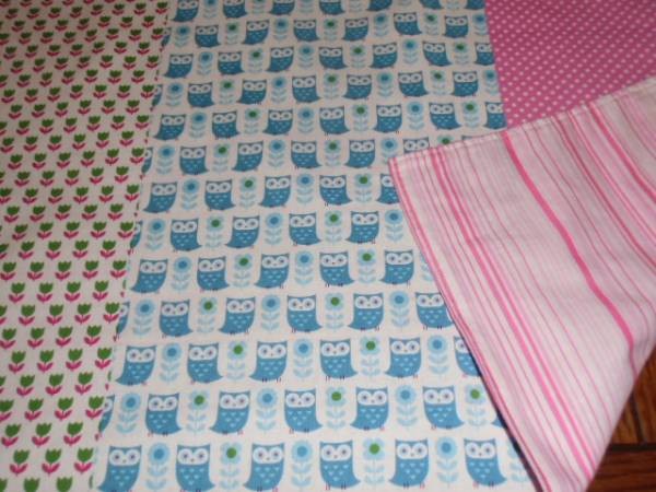 > No.30 大判裏付ランチョンマット ハンドメイド 40x60 お花&ふくろうパッチ柄