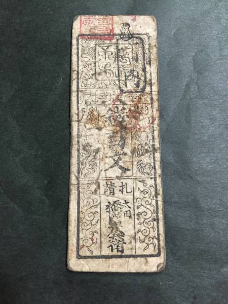 - 【藩札/私札95】 河内通用 長澤産物手形?銀百文 札請