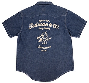 - テッドマン/刺繍/半袖ウエスタンシャツ/ネイビー/M/tshb-1400ws/エフ商会/カミナリモータース